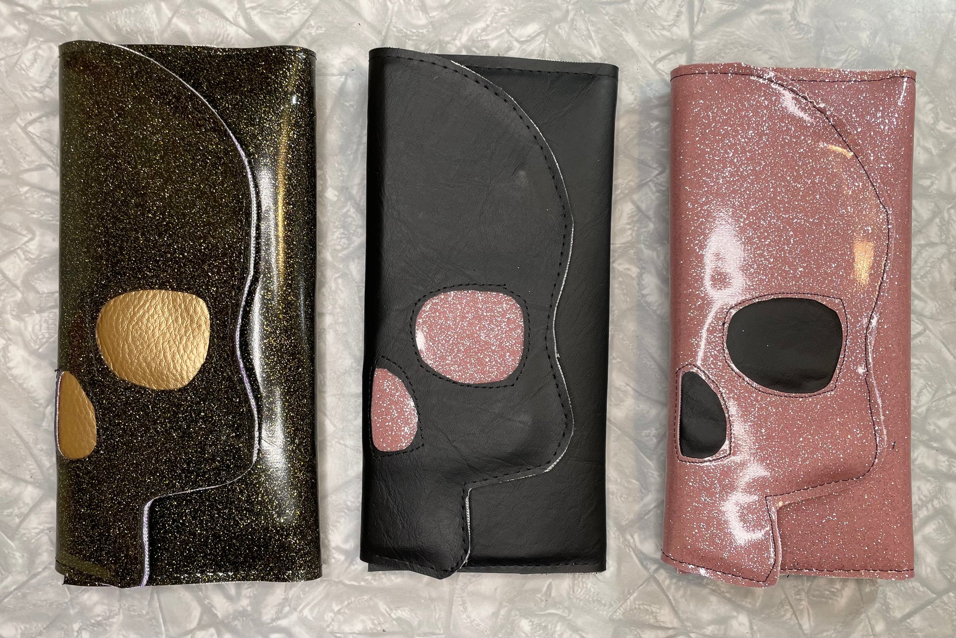 This wallet has 8 card slots, 1 zippered pocket for change, 2 slip pockets for cash.