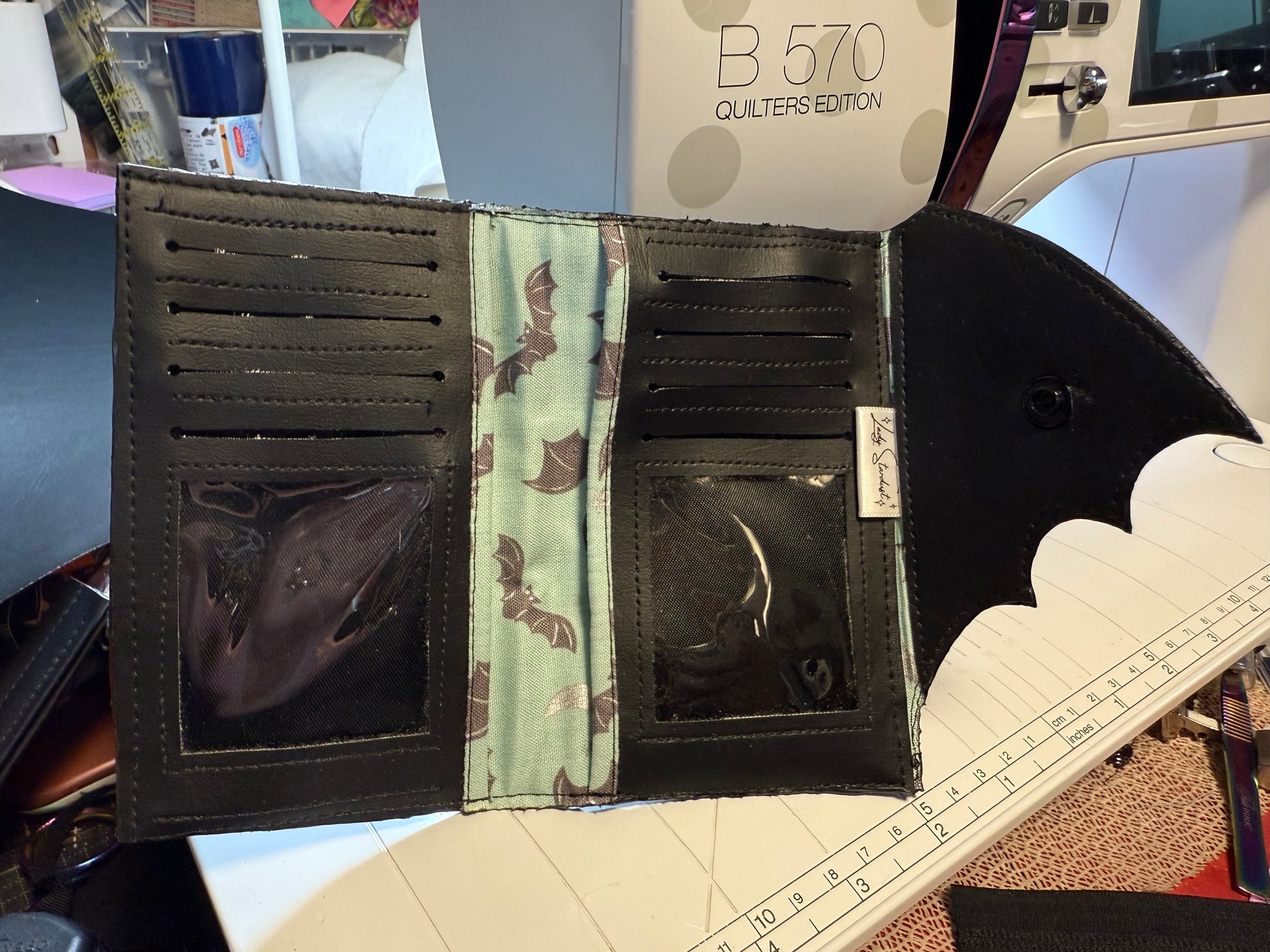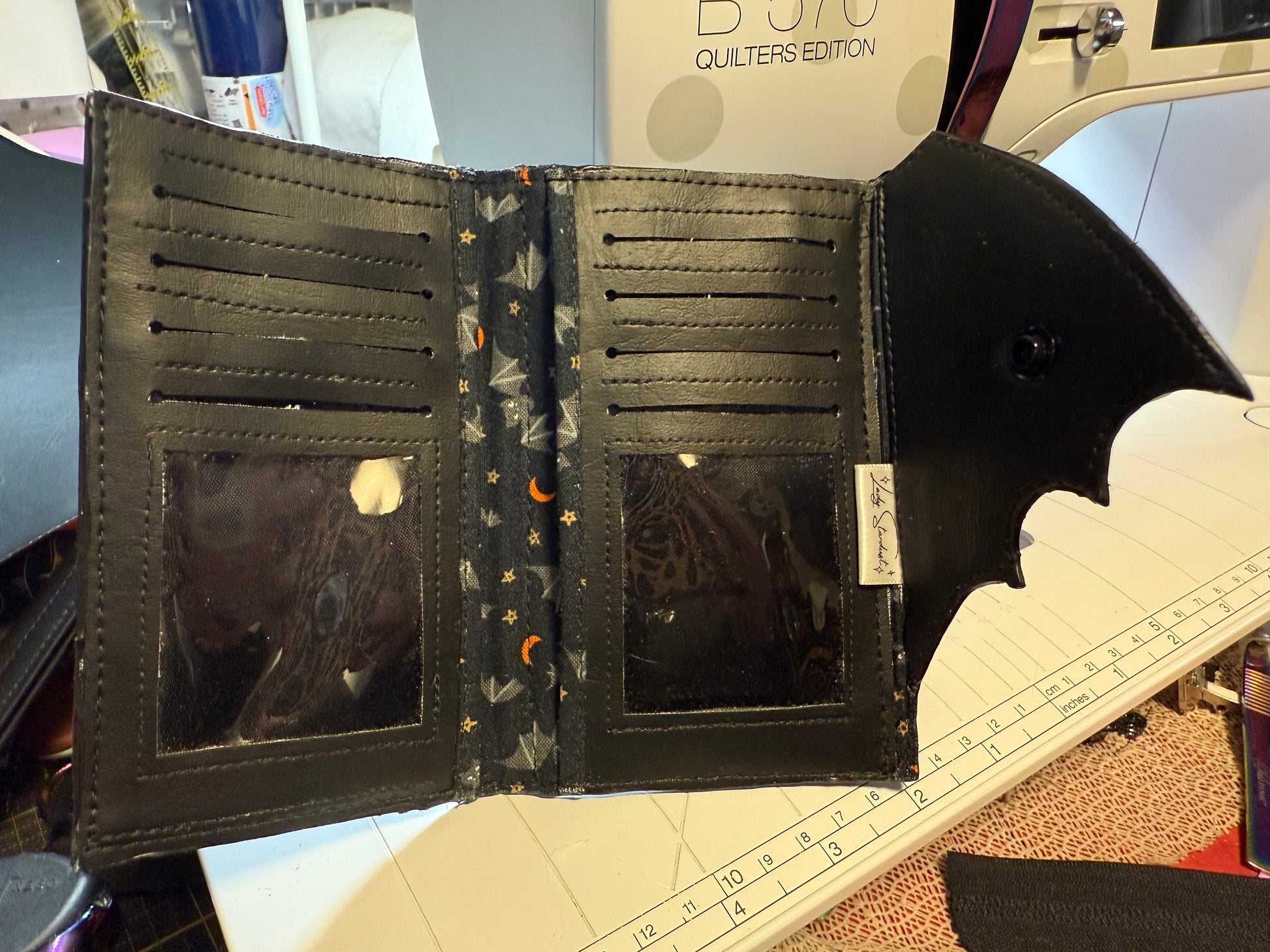 This wallet has 8 card slots,Β 1 zippered pocket for change, 2 slip pockets for cash and two window card slots for your ID.