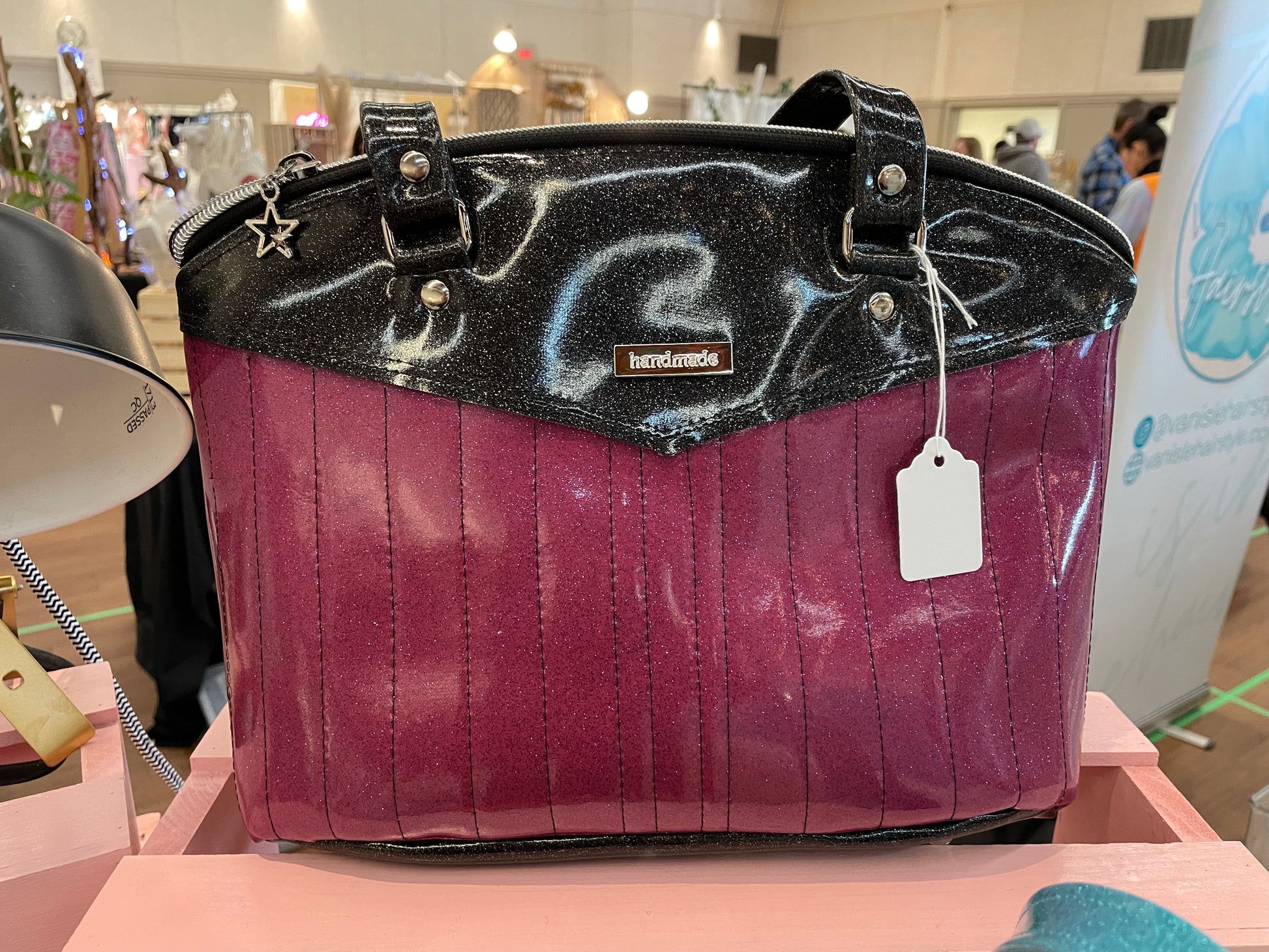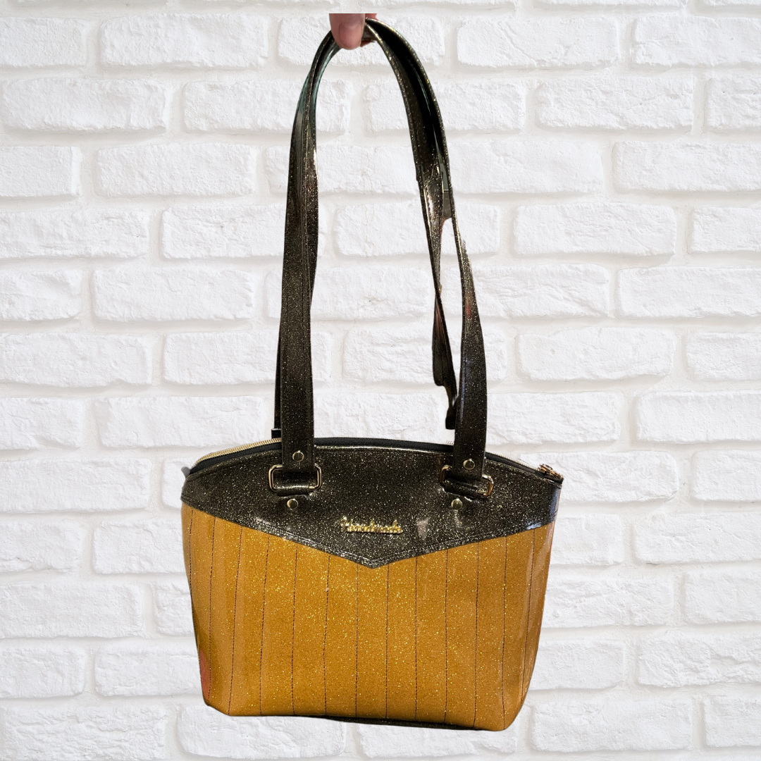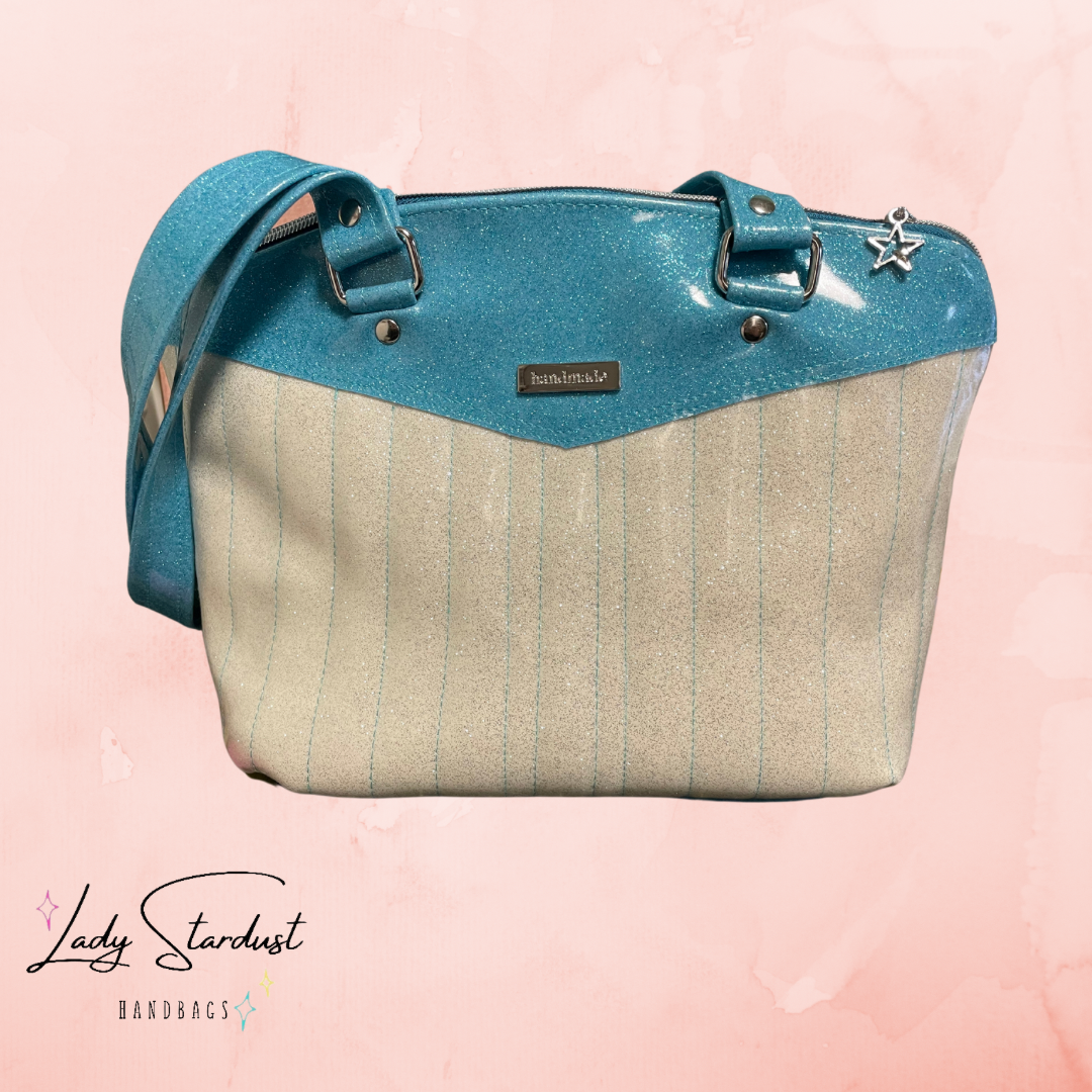 Materials: shimmer vinyl, cotton lining, hardware