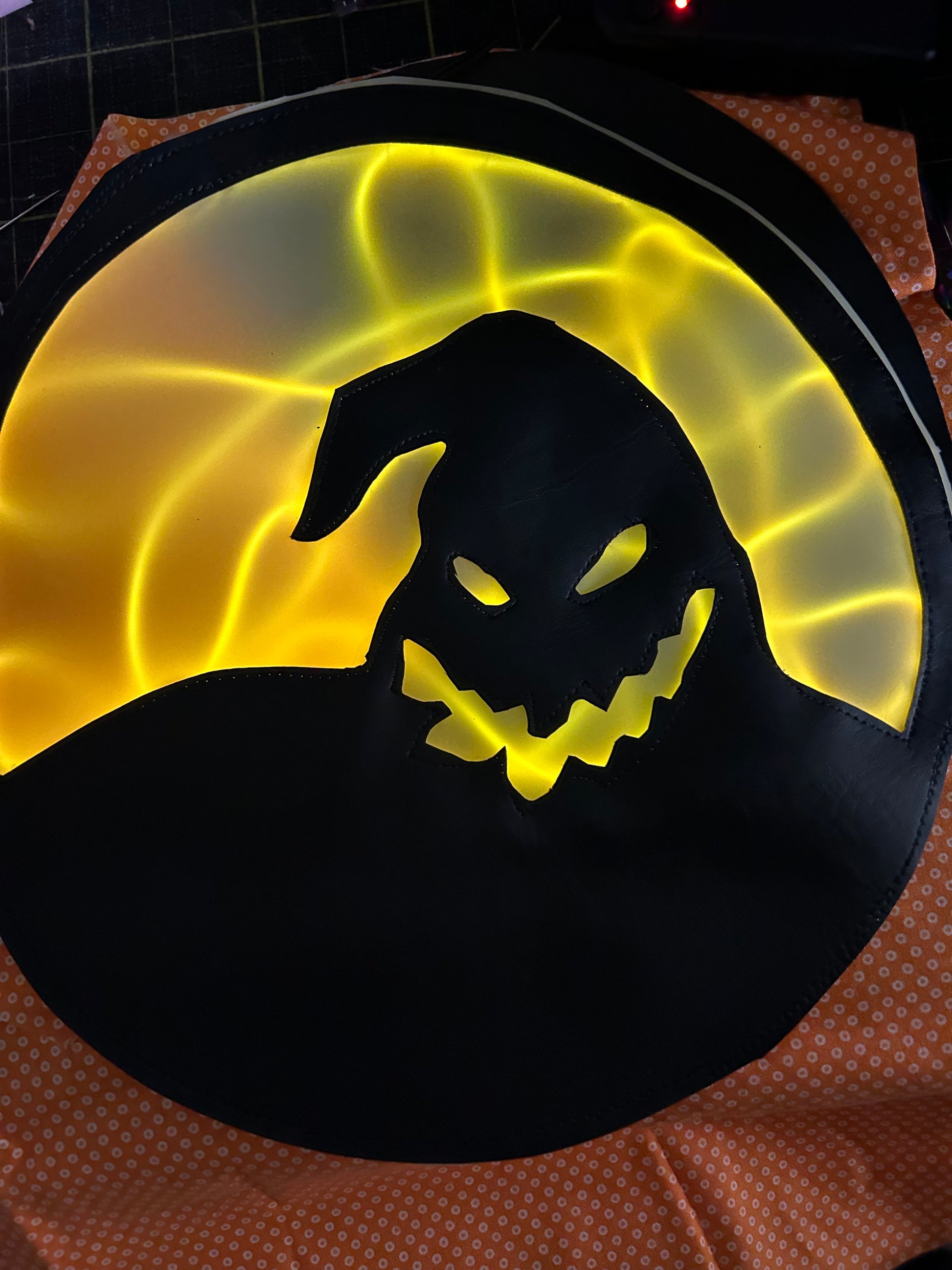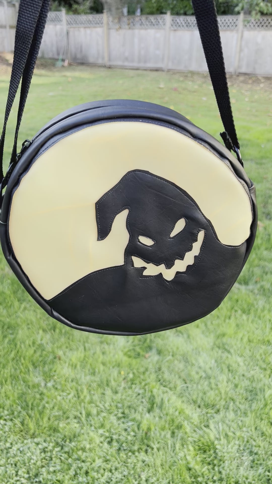 This circle bag features an appliqué main panel detail that is lined with lights which you can operate on 3 different settings.