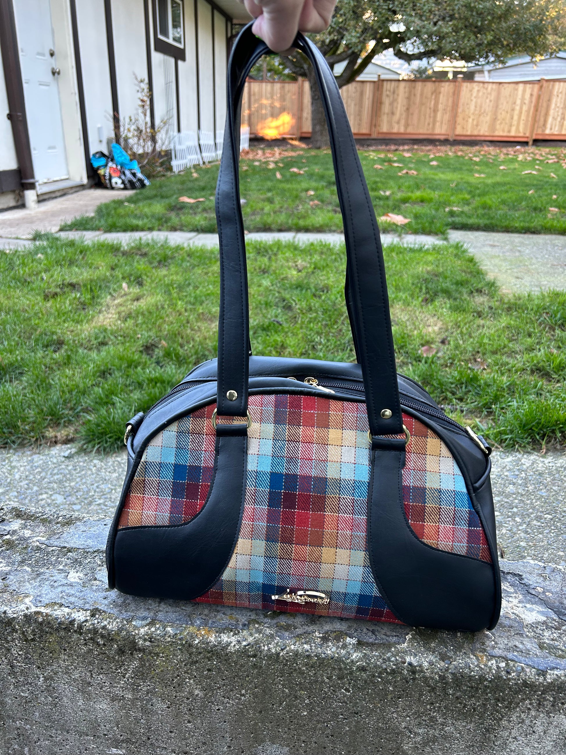 Plaid Wool Bowler Bag