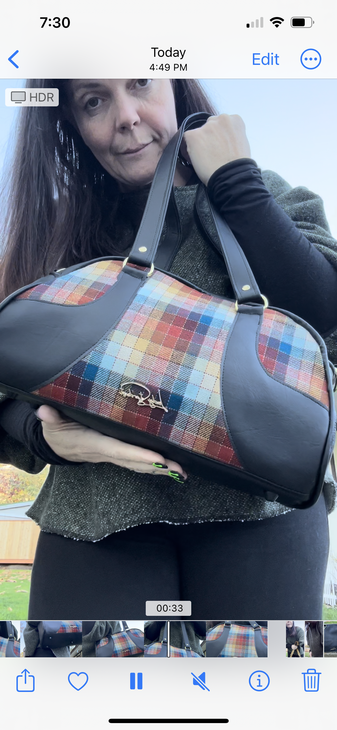 Featuring plaid Peloton wool, this versatile bowler bag can be used as a handbag or with crossbody strap.